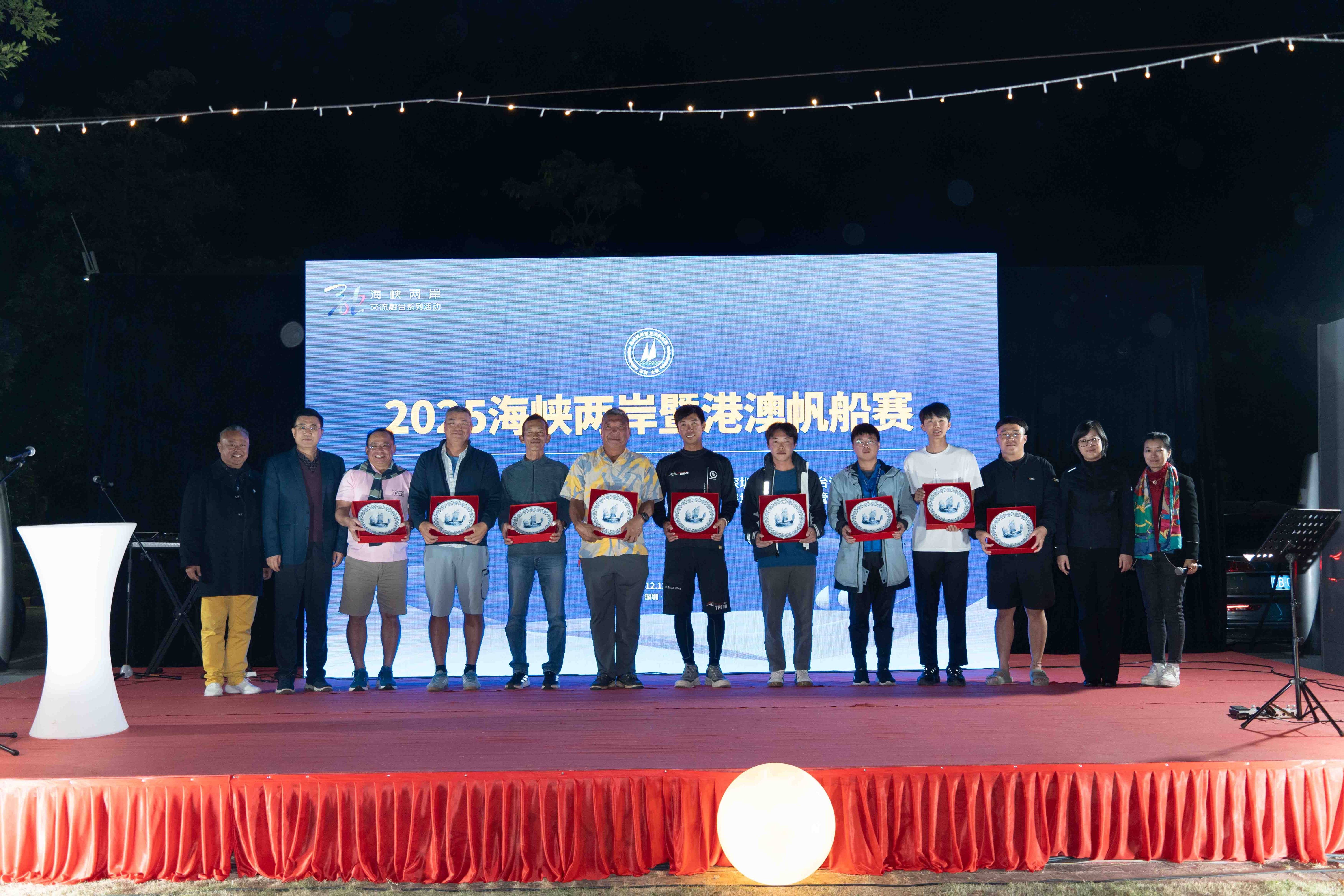 除此以外,本届海峡两岸暨港澳风帆赛还于12月15日晚举行了选手之夜。在夜色篝火中,赛事组委会为船队准备了纂刻着风帆形象的特点瓷盘,参赛的各支台湾船队也佩带着经心挑选的凤梨酥、峻岭茶等特点伴手礼来到现场,互赠礼物,交换格式。