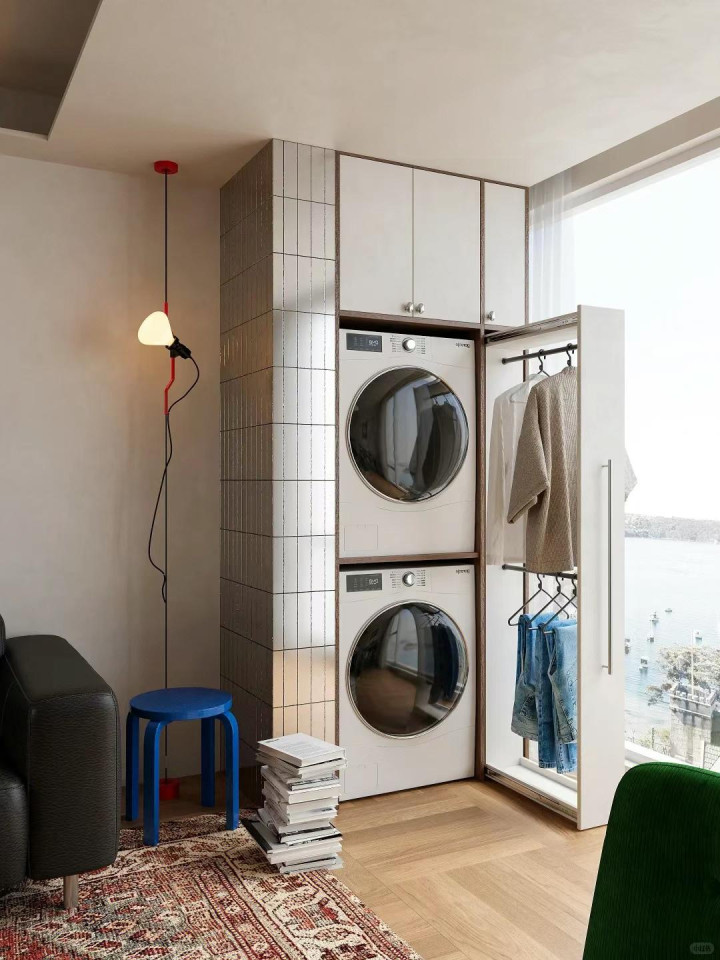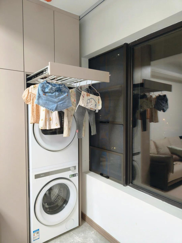 只消家里不装晾衣架,那基本皆要装烘干机,是以烘干机的上边和侧边即是两个可以的临时晾衣空间,天然方位不大,但真的是比莫得强太多了。