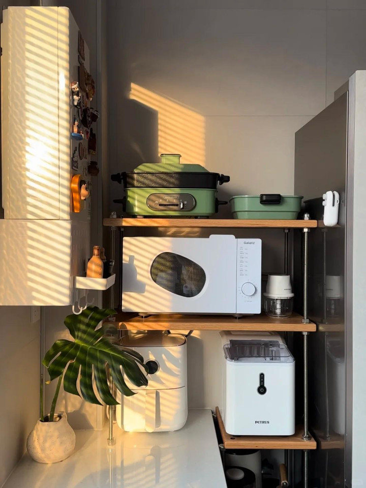 关联词心疼活命,出手才略强的网友却用几块木板和螺丝,就将这里改酿成厨房家电收纳的好方位,这一下子就开释出不少橱柜的空间,这样橱柜里面就有满盈的方位装其它东西了。