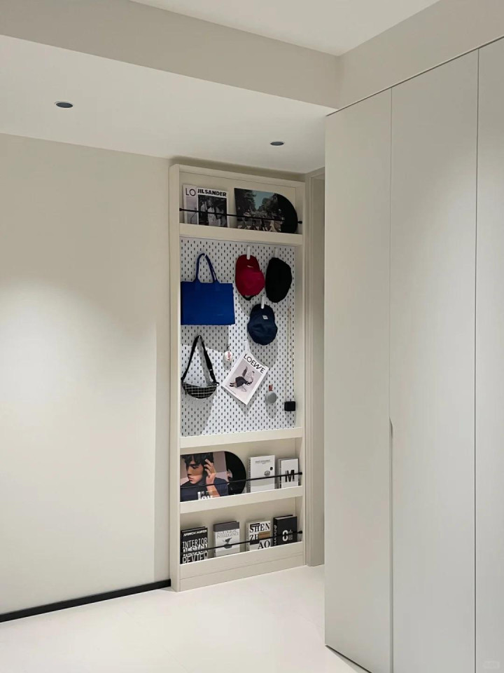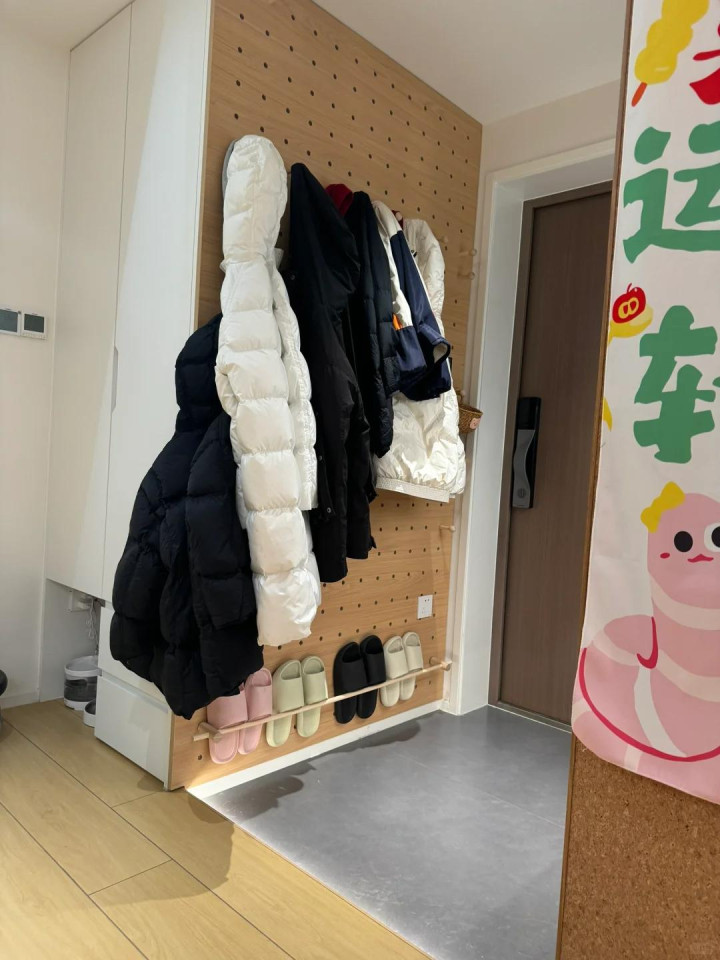 天然最实用的天然是造价更高小数的洞洞板了,冬天依据需求多加横撑当挂衣墙用,夏天径直调动成洞洞板,十足相当受家里小一又友的可爱。