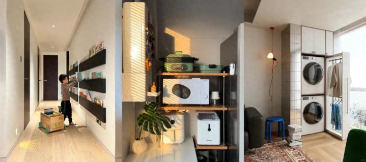 他们有的是前期酌量,让小方位融入大空间,形成一个连贯的合座,有的是后期我方DIY,这里成为我方的私定,有的则是被动接头出来的,因为家里储物确凿不够用了。