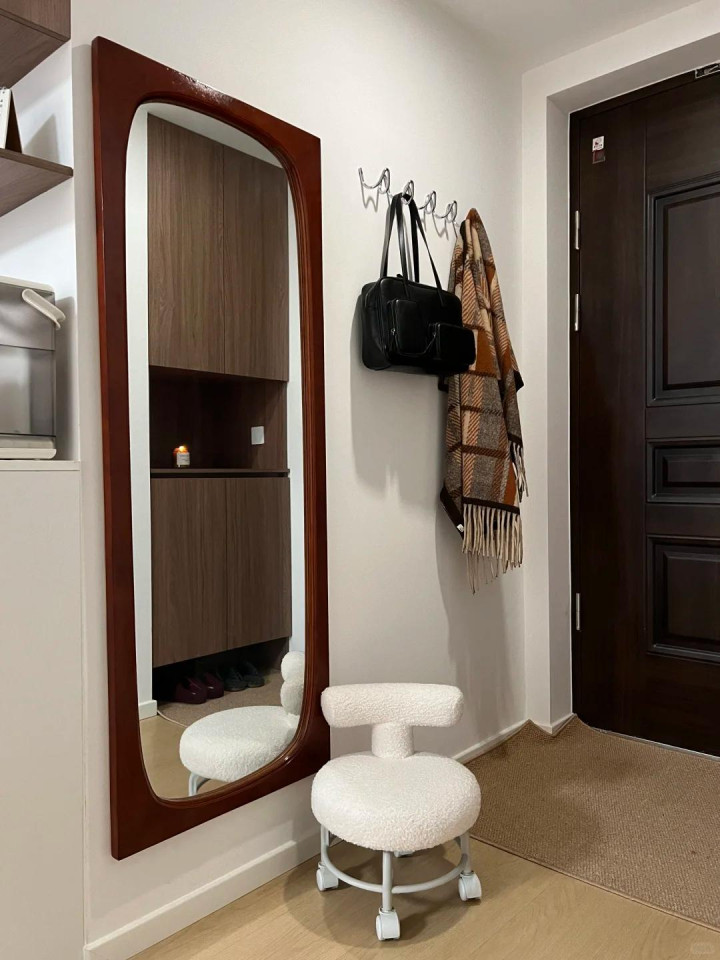 毕竟秋冬天一稔帽子挂这里就不消往沙发上扔了,家里就整洁了,毕竟这个大穿衣镜是能照亮女主东说念主的好意思,让女主东说念主每天在这里自鸣沸腾的。